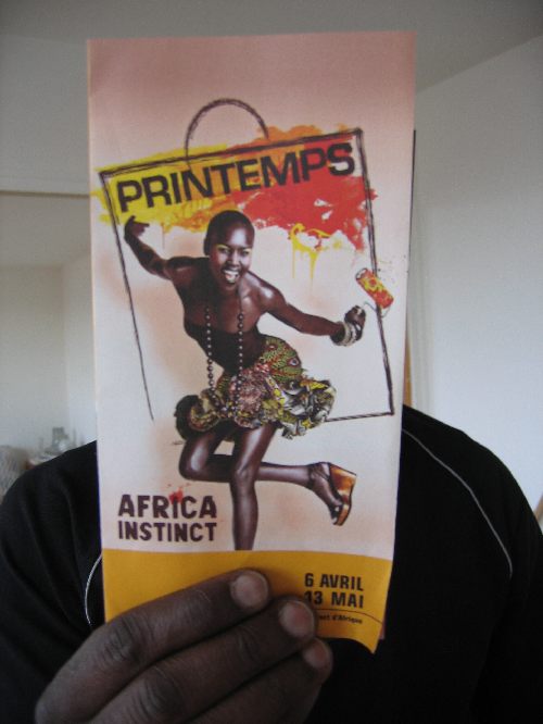 Selon Claudine Verry, responsable du département concept et style du Printemps, interviewé sur le site afrik.com, « L’Afrique est une source d’émotion et esthétique incroyable ». Sur un dépliant, et sur certains stands du grand magasin, tous les produits sont affublés d’un label « ethnique » : « Il y a de l’ethnique dans l’hair », « le charme ethnique de sa dentelle tatouée », « palette ethnochic et boubouchoc ». Chercheurs d’émotions, d’authenticité et d’ethnicité, ne cherchez plus, une seule destination, l’Afrique ! (Comment ça, il y a une cinquantaine d’États ? Mais débrouillez-vous mon vieux !)