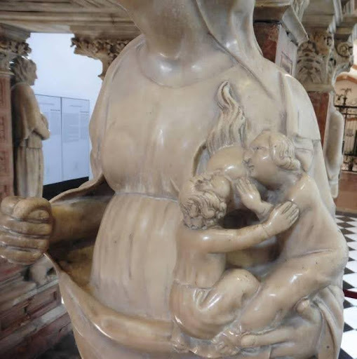 2d. Le sein de la caritas donné en partage (enfermée sous ses pieds : l’avarice). Bergame, Baptistère de la cathédrale (ca 1340). Cliché J. Morsel, 2017.