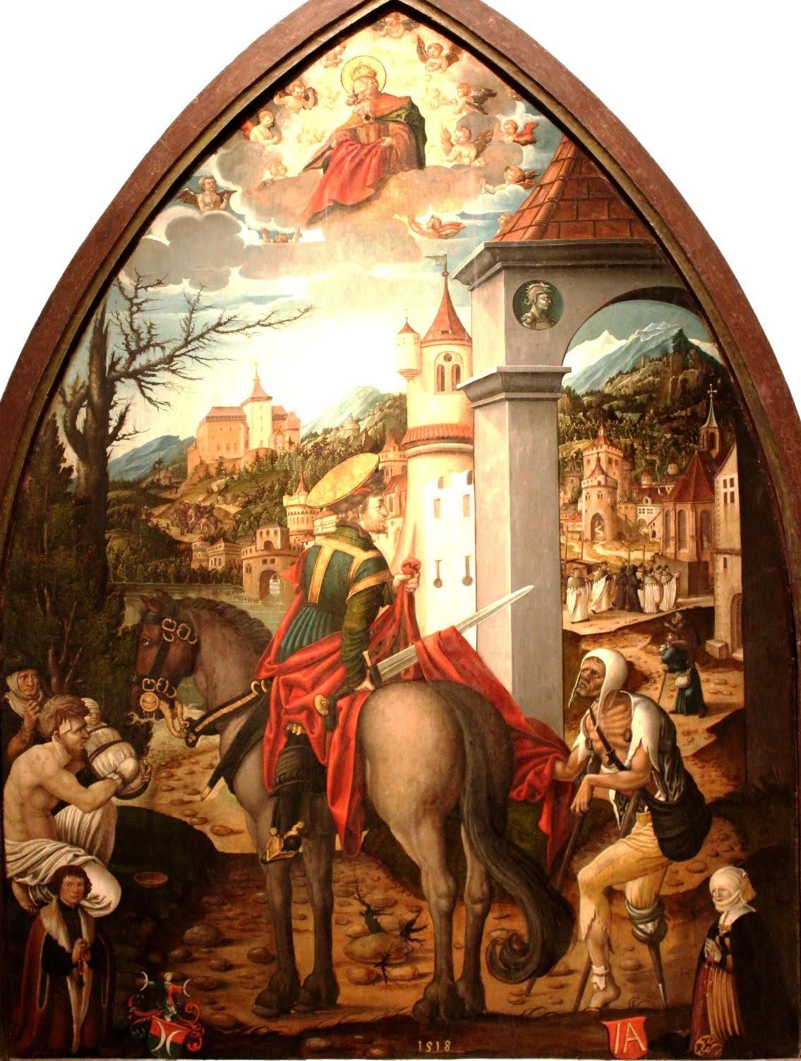 Figure 4. Saint Martin partageant son manteau. Tempera sur panneau de bois provenant de l’église St-Martin de l’hôpital des bourgeois de Bruck an der Mur (Styrie), 1518. Graz, Universalmusem Joanneum (Schloss Eggenberg). Cliché J. Morsel, 2025.